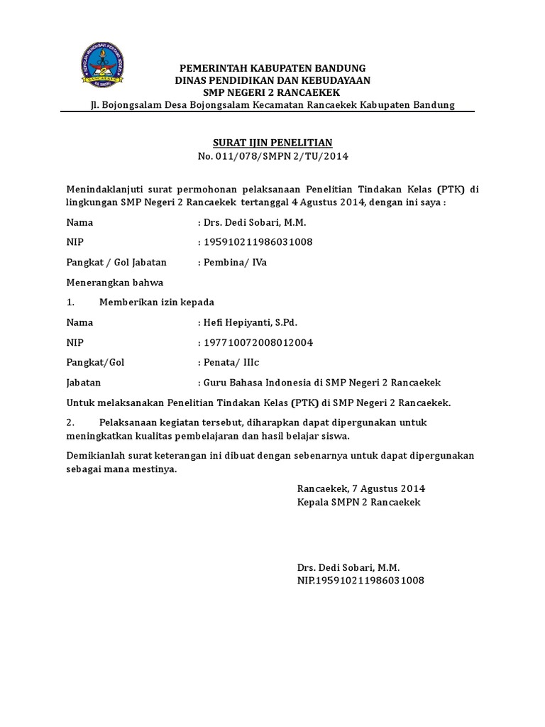 Contoh Penelitian Tentang Sekolah IlmuSosialid Surat keterangan penelitian Surat Elektornik e. Yaitu Surat Ijin Penelitian Tindakan Kelas PTKDan Surat Ijin Penelitian Tindakan Kelas PTK ini telah saya kemas dalam format office words yang bersifat sederhana namun jangan bapakibu abaikan tentang Surat Ijin Penelitian. Kepala Sekolah pada UPTD SMP Negeri 2 Bojong KabTegal.