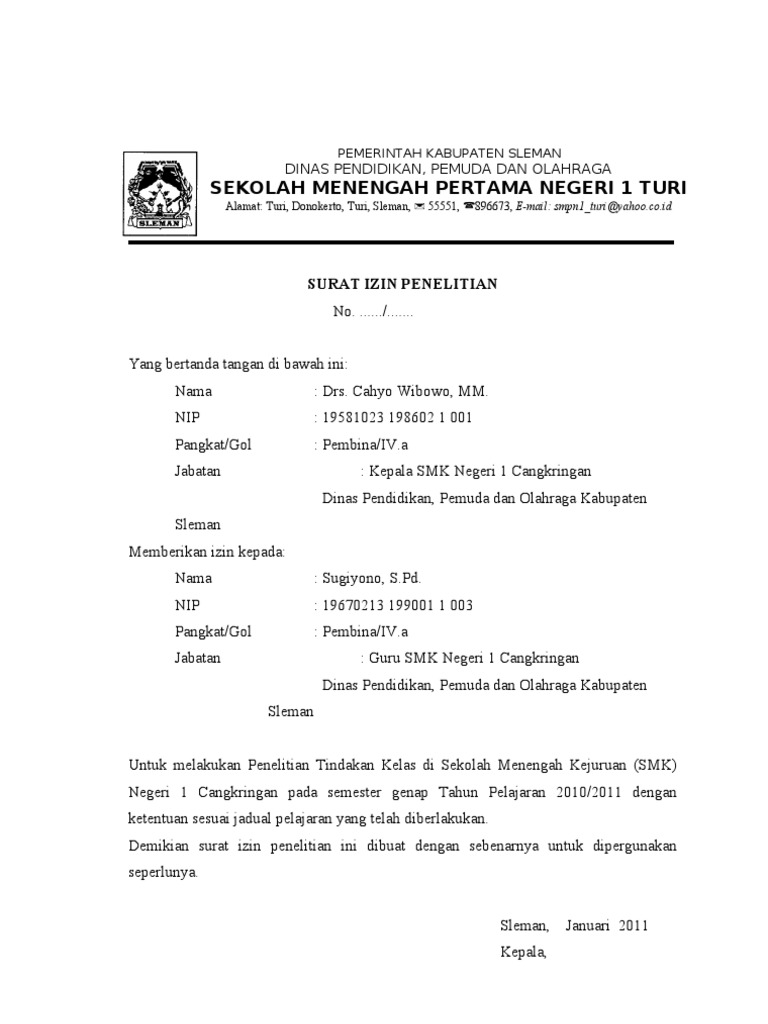 Ijin Penelitian Salatiga Dengan hormat Menanggapi surat permohonan saudara tanggal 11 Juni 2013 untuk mengadakan Penelitian Tindakan Kelas di kelas V SD Negeri Wonomerto 03 dengan ini kami menyatakan sebagai berikut. LAMPIRAN 4 KUESIONER PENELITIAN. Contoh Surat Ijin Penelitian Kti SURAT KETERANGAN melaks ptk upload Surat Permohonan Ijin Melaksanakan Penelitian Tindakan Kelas.