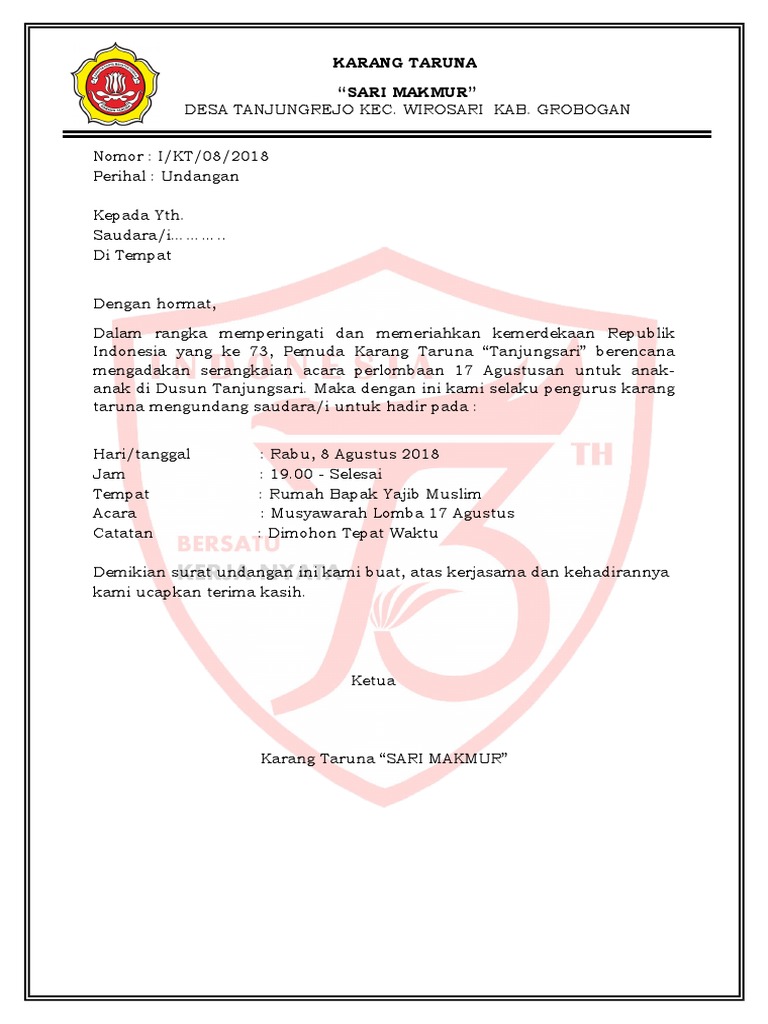 Serandaya Raya no1 Bekasi. 25 Contoh Surat Undangan 17 AgustusMusyawarah lomba 17 agustus catatan. Contoh Surat Undangan Hut Ri Ke 70 Surat 10.