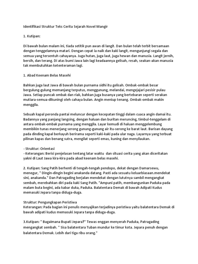Ident Struktur Teks Cerita Sej Novel Mangir Pdf