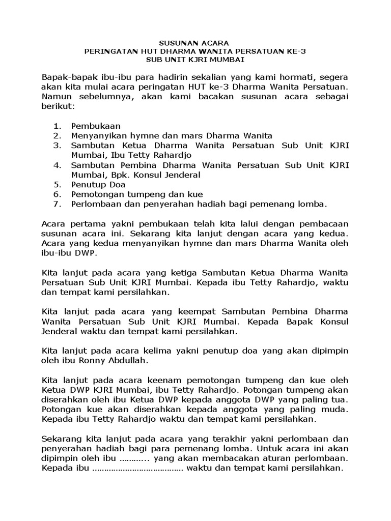 Contoh Teks Pembawa Acara Mc Dharma Wanita Persatuan Dpw