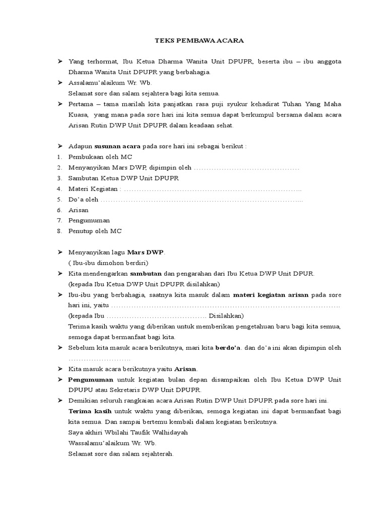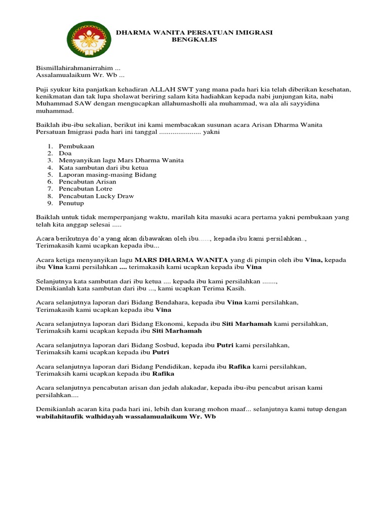 Admin mengumpulkan informasi Teks Pembawa Acara Arisan Dharma Wanita.