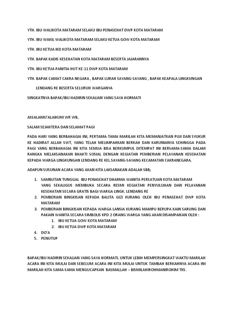 Contoh Susunan Acara Mc Pertemuan Rutin Ibu Ibu Pkk Muda Mudi Condrowangsan