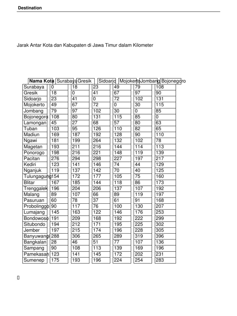 Tabel Jarak Antar Kota Di Jawa Timur - Semoga dengan tabel ini bermanfaat bagi Anda. Tabel Jarak Antar Kota Jarak Antar Kabupaten Kota di Jawa Timur Lontar Madura.