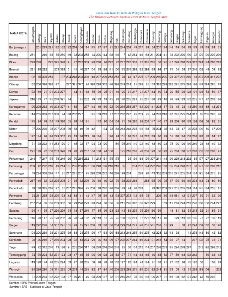 Tabel Jarak Antar Kota Di Jawa Tengah Python