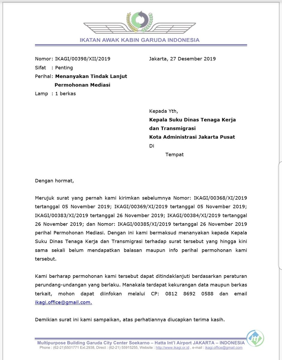 Ikatan Awak Kabin Garuda Indonesia No Twitter Pada Hari Ini Ikatan Awak Kabin Garuda Indonesia Ikagi Menanyakan Kembali Tindak Lanjut Permohonan Mediasi Kepada Sudinakertrans Jakarta Pusat Atas 5 Surat Permohonan Mediasi Yang